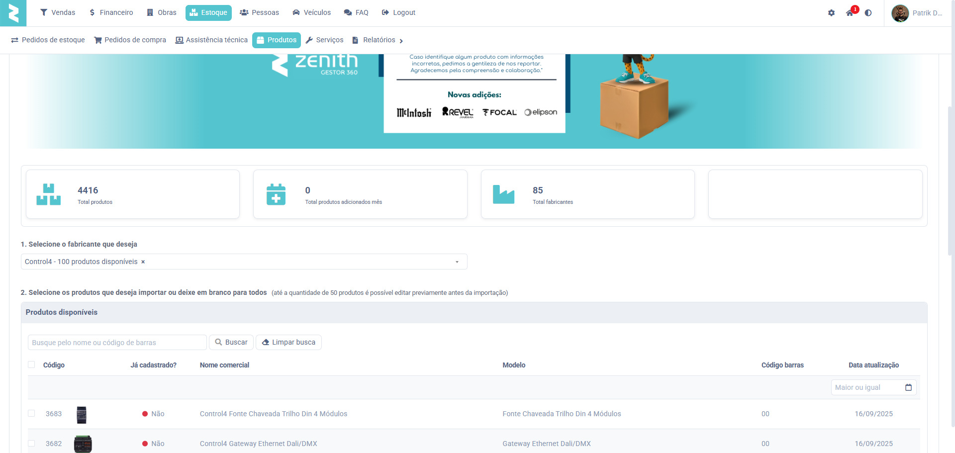 O que hoje encontramos no zenith, toda parte de propostas, acompanhamento Comercial, gestão operacional ja esta nele, e estamos evoluindo agora para parte de estoque e compras.