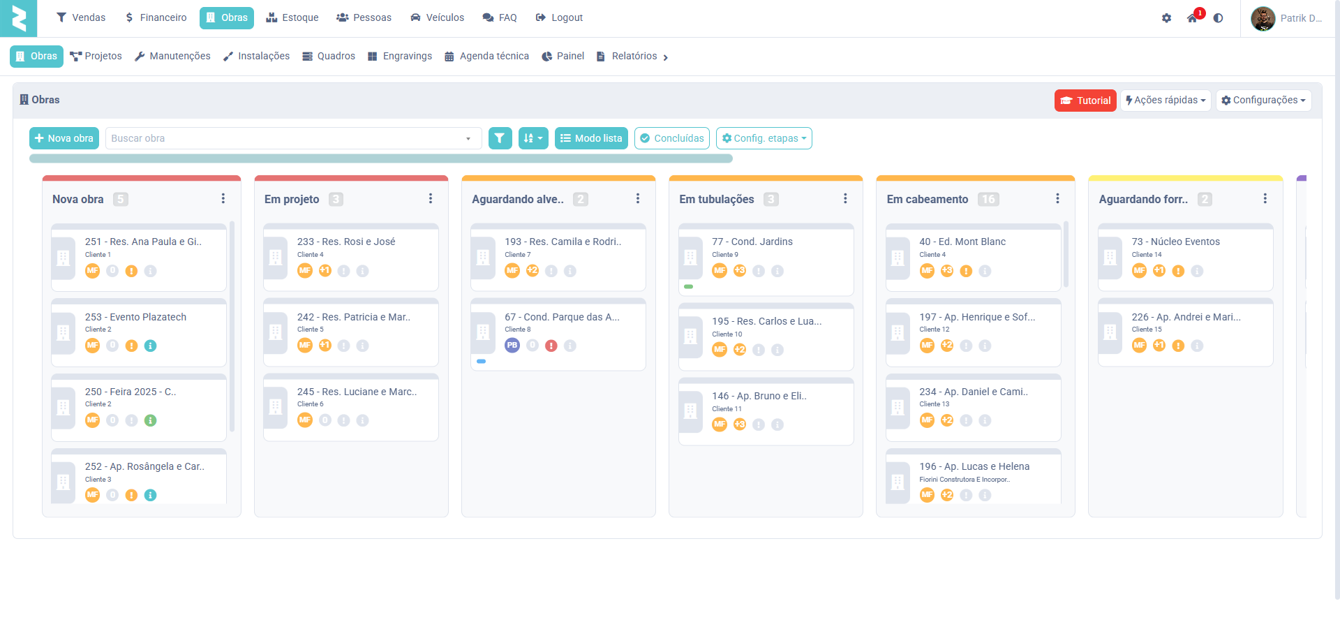 Não perca de vista suas obras, prazos, produtos, projetos, credenciais, documentos, ordens de serviço, vistorias, ocorrências e outros.