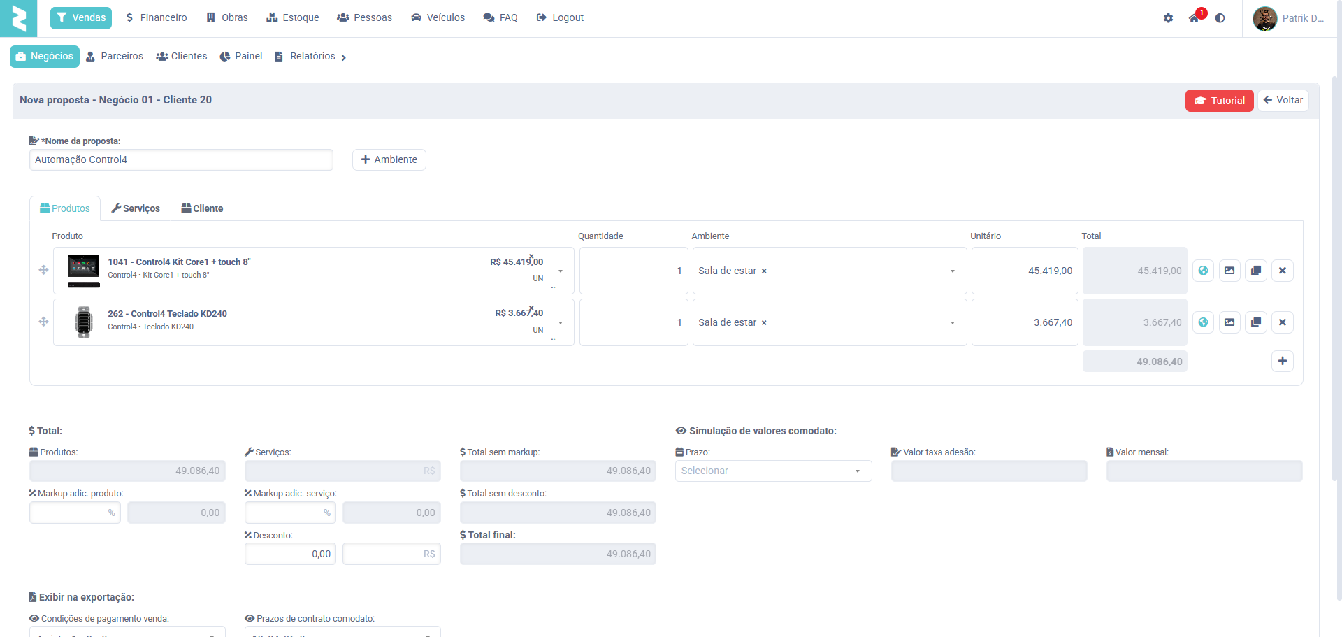Um grande gargalo nosso era a parte comercial, onde tinhamos um sistema para propostas e um outro para gestão dos pipes, pois não encontrávamos sistema que nos desse essa parte orçamentaria como queriamos.